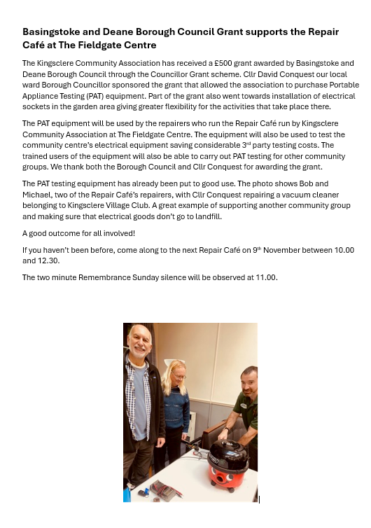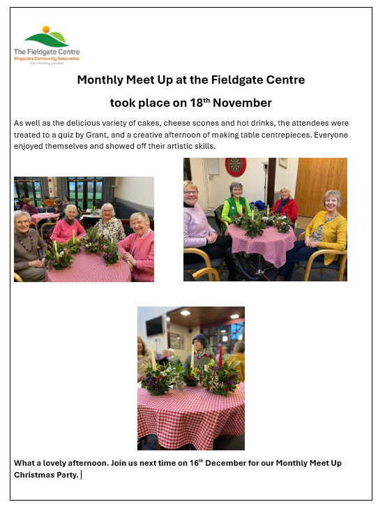 The Fieldgate Centre is operated by Kingsclere Community Association, a charity run by volunteers. We need your help to make sure the centre continues to be a place that the community can use for a wide range of activities and to run events for the community. If you feel that you can spare a few hours now and again to help with organising events, or with DIY/decorating, please call the office – your help will be worthwhile, appreciated, and you’ll probably enjoy it!